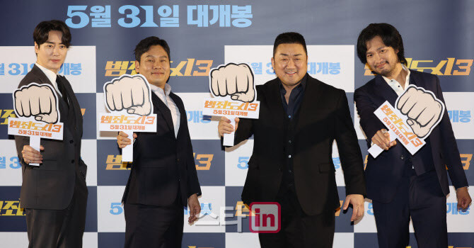 마지막으로 '범죄도시'시리즈의 제작자겸 주인공 마동석은 '범죄도시' 시리즈를 위해 평생을 바치다시피 해서 원형 탈모까지 생길 정도였다고 한다. 이어 마동석은 "범죄도시 1,2편을 포함해 한 편, 한 편 정성 들여 최선을 다해서 몸이 부서져라 노력하고 있다고 말했으며, 다행히도 지금 주변 반응은 너무 좋다며, 꼭 극장 와서 봐주시면 좋을 것 같다"고 당부했다. 또한 '범죄도시 3'을 청소년 관람 불가로 알고 계신 분들이 많은데 15세 관람가다. 처음 예고편에 흡연하는 장면이 있어서 '19금' 등급을 받을 뻔했는데 잘 해결되었다고 한다. 그 외에도 이범수, 김민재, 고규필, 전석호 등 새로운 인물들이 함께 하며 이영화를 긴장감 넘치고 더 재밌게 그릴 것으로 예상하고 있다.